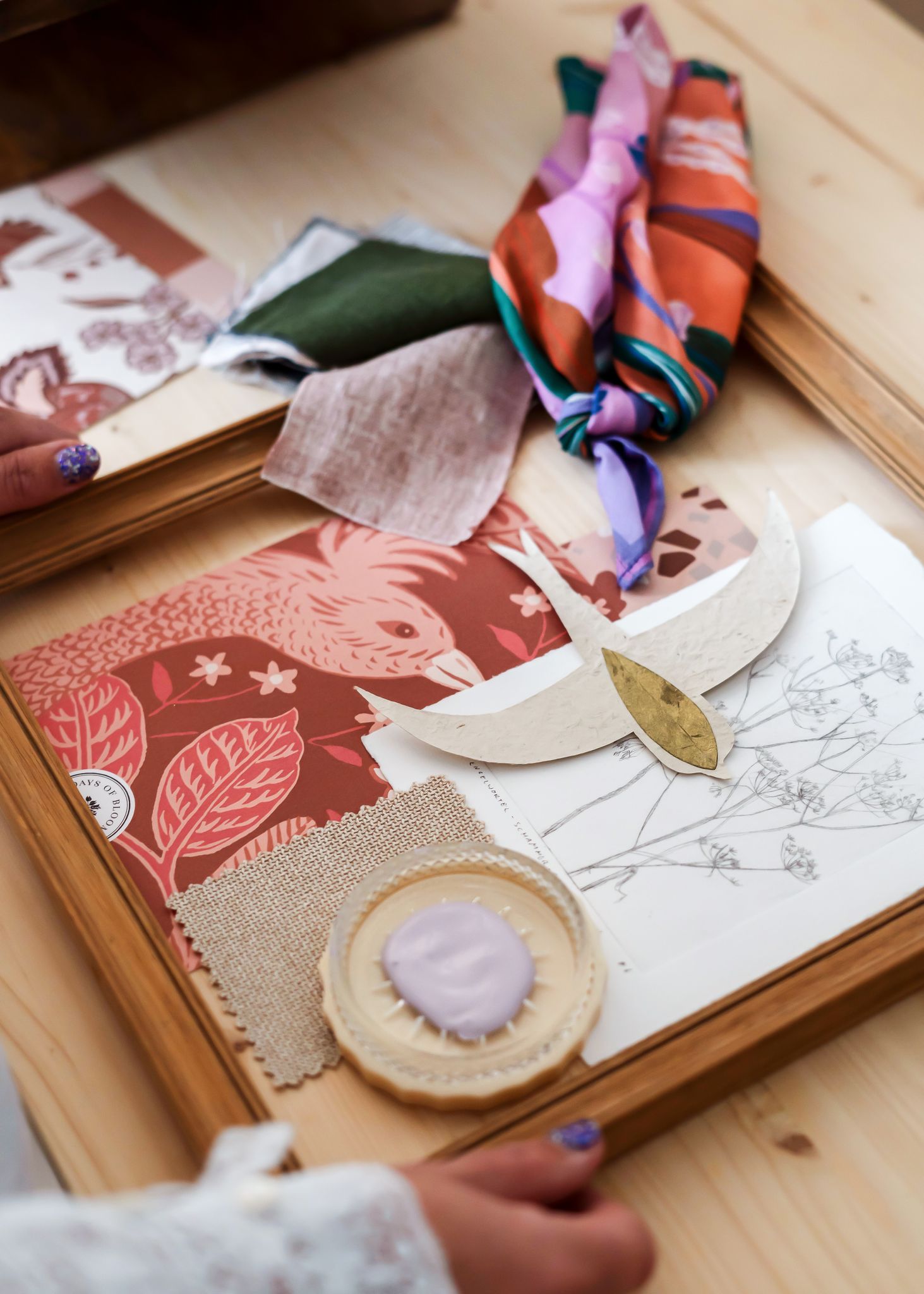 Yes, we are going to work! We start the first part of the design with an atmosphere mood board, this shows the style of the interior that we have in mind for you. We link a color palette to the mood board, because colors play a hugely important role in the atmosphere of your new interior.